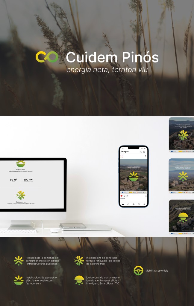 Un projecte d’identitat visual i comunicació per a l’Ajuntament de Pinós que celebra l’energia renovable i un territori viu.